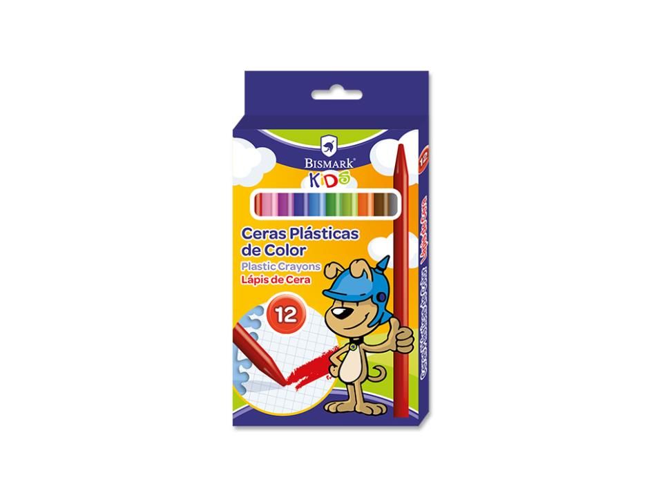 CERAS PLÁSTICAS ESCOLARES, EST. DE 12 COLORES BISMARK.Se pueden borrar y afilar con sacapuntas.