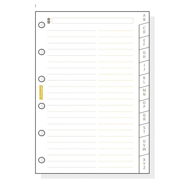 Recambio para agendas de 6 anillas finocam classic 602 (73x114 mm)Interior: hoja ÍNDICE ABECEDARIO. Contenido: 12 hojas. C-275.Papel de 70gr/m2; papel neutro, libre de ácido y cloro elemental.