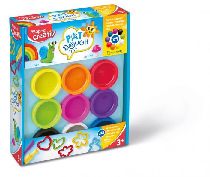 Juego de PASTA de MODELAR FANCY EARLY AGE de MAPED. Contiene: 9 BOTES + 9 ACCESORIOS. PARA NIÑOS A PARTIR DE 3 AÑOS. Peso total 840 gr. Medidas : 20 x 25 x 6cm.