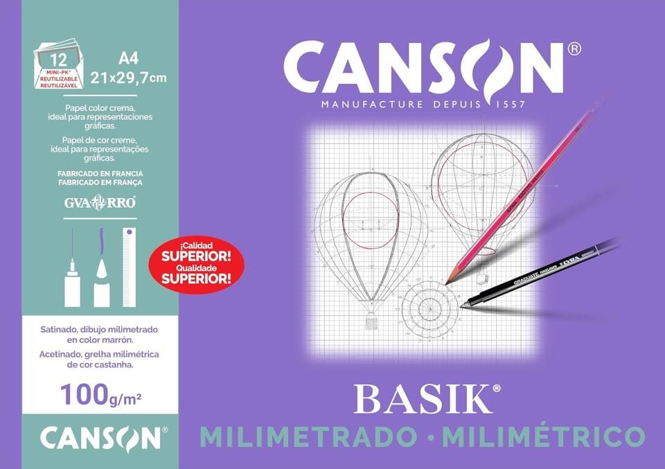 BLOC ENCOLADO 50h CANSON DE PAPEL BASIK MILIMETRADO.- Papel milimetrado.- 100g.- Ideal para gráficos.- Block de 50 hojas encoladas tamaño A4.