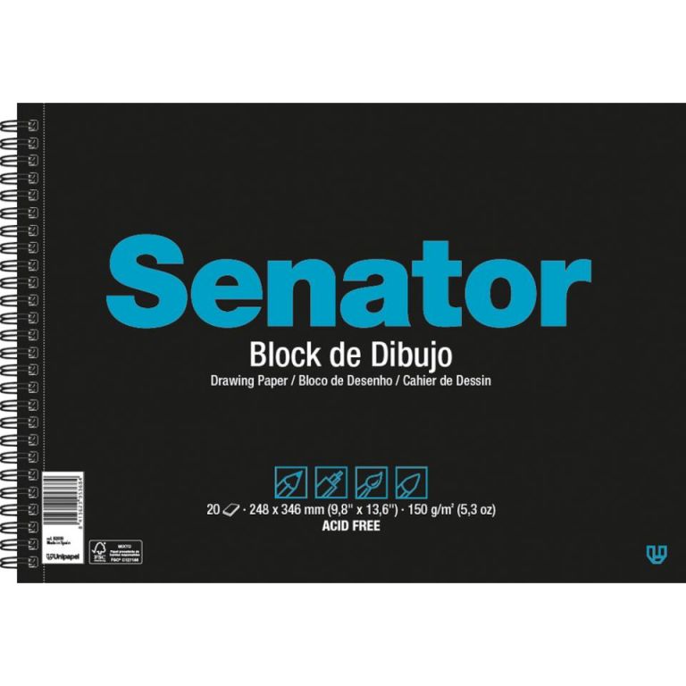 BLOCKS DE DIBUJO FOLIO PROLONGADO 20 HOJAS 150 G CON RECUADRO Y SIN TALADROS SENATOR. Buena estabilidad dimensional.- Ideal para lápiz, estilográfica, pincel, cera...- Producto final Acid Free, encolado neutro y gran resistencia al envejecimiento.- Las celulosas empleadas para su fabricación son ecológicas (ECF).- Papel muy valorado por los creativos para el realce de sus realizaciones.Envase de 16 unidades.