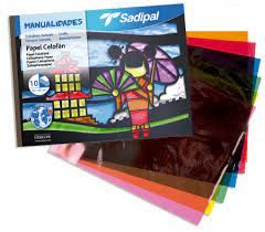 BLOC de MANUALIDADES con diez láminas de PAPEL CELOFAN de colores variados.