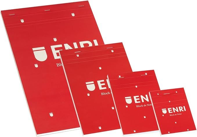 Blocs de notas ENRI con tapa. Tamaño DIN A7. Grapados y perforados, 80 hojas, papel de 60grs. Cuadriculado. Cubiertas plastificadas. Envase de 10 unidades.
