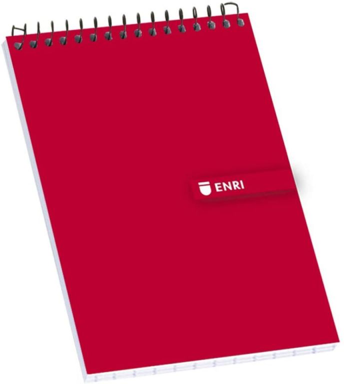 Bloc de notas con espiral. Espiral simple negra, gira las páginas 360º cómodamente. Tapa cartón en colores variados, resistente y ligera. Formato 8º apaisado. 80 hojas con cuadrícula 4mm x 4mm.