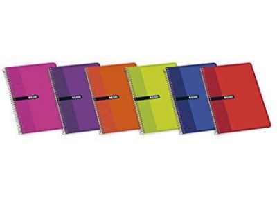 Bloc de notas con espiral. Espiral simple negra, gira las páginas 360º cómodamente. Tapa cartón en colores variados, resistente y ligera. Formato 16º natural. 80 hojas con cuadrícula 4mm x 4mm.