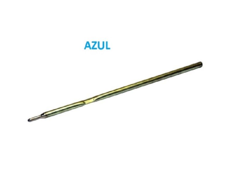 Recambios de bolígrafo Artes Metálico LARGO 0,5 mm , aplastado para contener el muelle del bolígrafo. Medidas largo: 10,5 cm . Disponible en color azul, negro o rojo. Envase de 10 recambios.