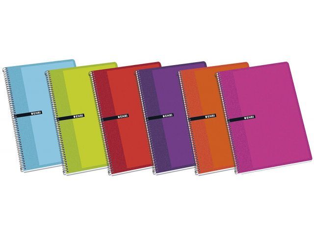 Bloc de espiral de tapa dura cartón plastificado (contracolado). Tamaño folio, de 80 hojas. Papel de 60 grm. Rayado: LISO.Envase de 5 unidades en colores surtidos.