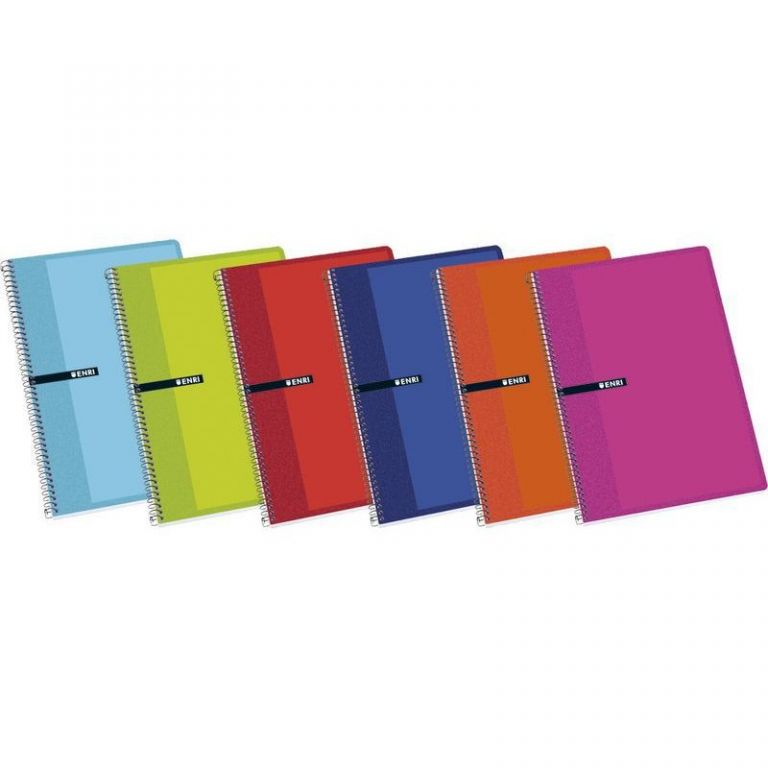 Bloc de espiral tapa dura (contracolada). Tamaño 4º. Rayado : cuadrícula 4x4 mm. Papel de 60 grm.Envase de cinco libretas en colores surtidos.