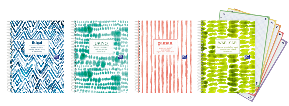 BLOC A4 DECORADO OXFORD JAPANDI. Bloc microperforado de 120 hojas, tapa extradura. Cuatro diseños. Envase de 5 surtidos.