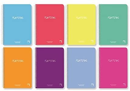 CUADERNO CON TAPAS DE POLIPROPILENO CON ESPIRAL. TAMAÑO CUARTILLA, 80 HOJAS DE PAPEL EXTRA DE 90GRM. RAYADO: PAUTA 2,5MM. CON MARGEN . ENVASE DE 5 LIBRETAS COLORES SURTIDOS.