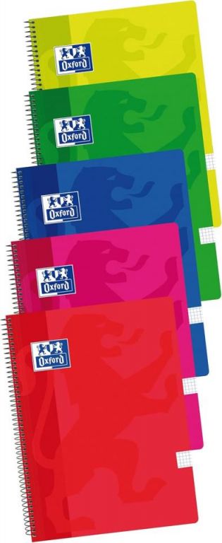 PACK 5 BLOC Fº 80H.90 GR. TP 4X4 VIVO OXFORD. Envase ahorro de 5 libretas Folio Tapa de plástico colores Vivos surtidos.