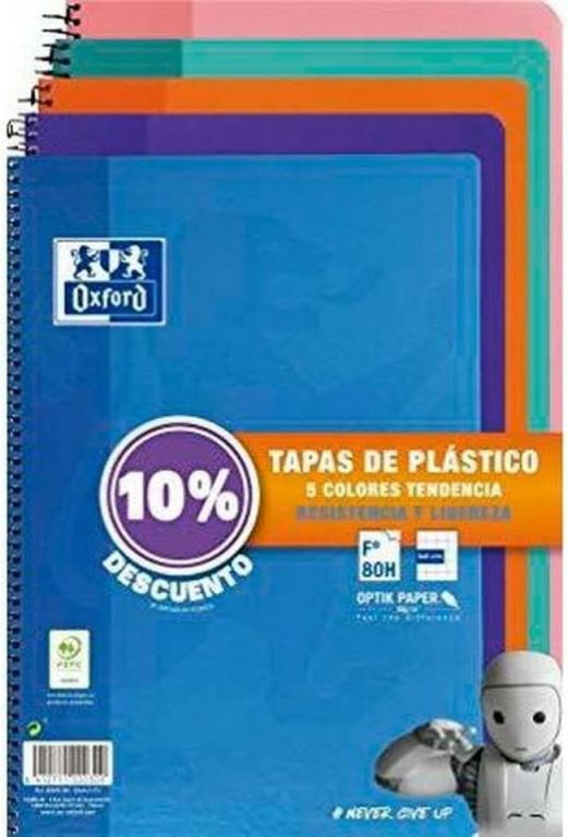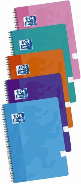 PACK 5 BLOC Fº 80H. TP 4X4 TEND. OXFORD.Envase ahorro de 5 libretas Folio Tapa de plástico colores Tendencia surtidos.