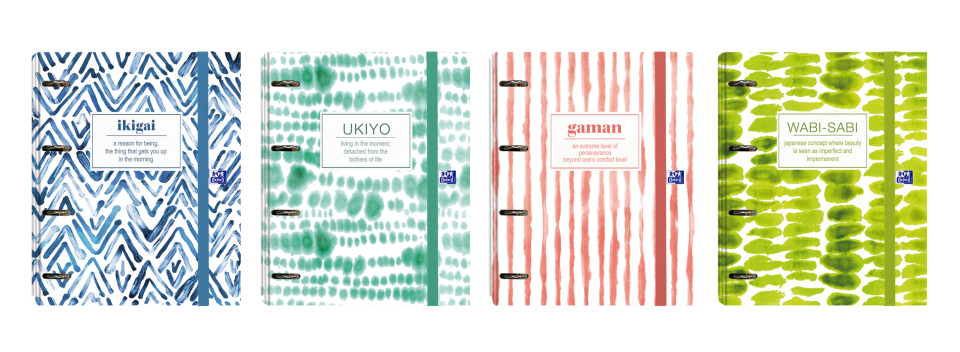 CARPEBLOCK DECORADO OXFORD JAPANDI. Con recambio Oxford, cuatro anillas y goma. Surtido cuatro diseños.