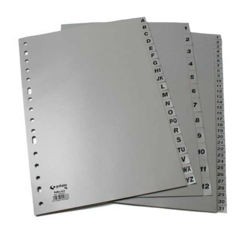 Juego abecedario para carpetas de anillas. POLIPROPILENO GRIS.Taladro múltiple. FORMATO FOLIO.