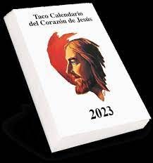 TACO CORAZON DE JESUS PEQUEÑO P.V.P REC 4,50Variante muy práctica del Taco Calendario números y letras gigantes, visibles a grandes distancias. Información diaria del calendario, santoral, salida y puesta del Sol y la Luna, reflexiones, sugerencias, frases célebres, minutos de filosofía y ofertas especiales de libros.