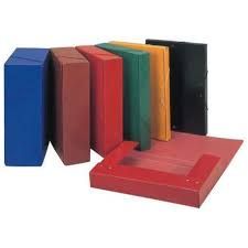 Carpetas de proyectos fabricadas en cartón brillo gofrado nº 10. Formato folio. Con gomas. Lomo 3 cm. Colores: negro, azul, rojo, verde.