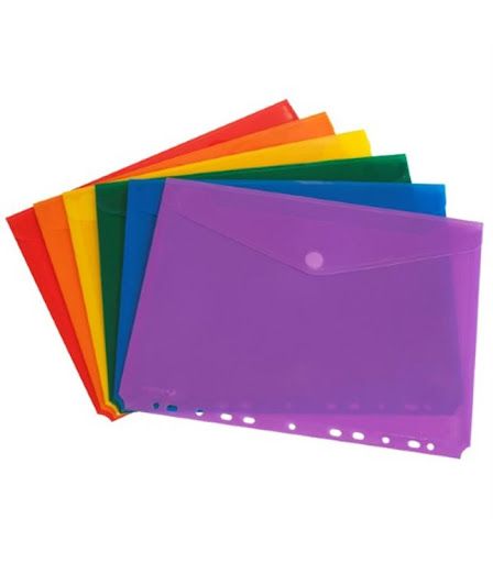 Sobres con VELCRO para archivo multitaladro multicolor A4. Borde con 11 taladros para archivar. El pack contiene 6 sobres.