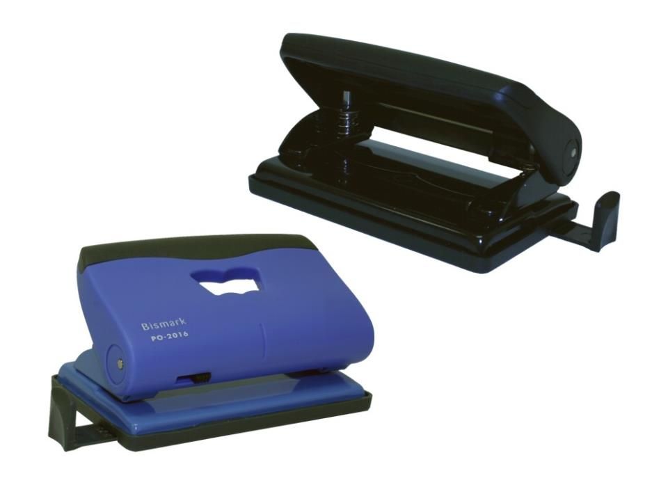 Taladro de 2 agujeros para taladrar hasta 10 hojas.Medidas : 10 cm x 6 cm , con guia de papel .Color azul o negro.