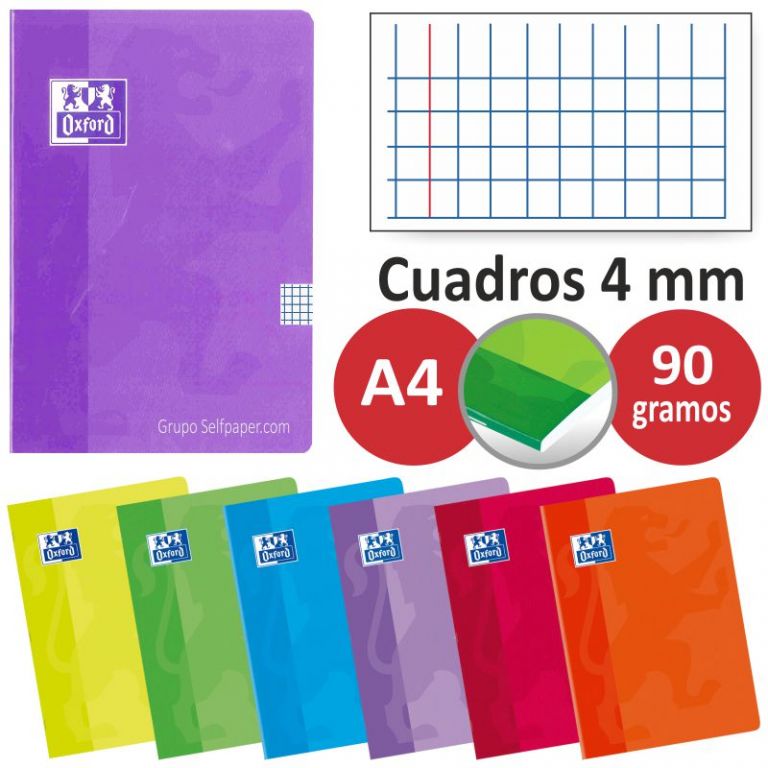 Libreta grapada Oxford CLASSIC, 48 hojas, con tapas blandas plastificadas muy resistentes. Rayado en la tapa para una fácil identificación. Cantos romos para evitar que las tapas se deterioren. Papel 90 gr Optik Paper: un papel único por su opacidad, lisura y satinado. RAYADO : CUDRÍCULA 4X4 90GRM.Envase de 10 libretas colores surtidos.