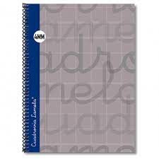 Cubierta:Cartón forrado con papel impreso a color y plastificado.Espiral sencillo con lazo vuelto, lacado negro.Papel y rayado:Offset blanco extra de 70 g/m con margen. Rayados con Cuadrovía Lamela® en tamaños de 2,5 mm.80 hojas. Los cuadernos de Cuadrovía Lamela® cubierta extra dura forrada de tamaño cuarto se presentan en paquetes de 5 unidades.