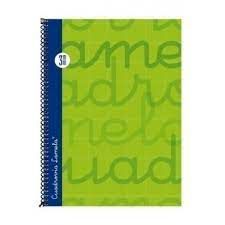 Cubierta:Cartón forrado con papel impreso a color y plastificado.Espiral sencillo con lazo vuelto, lacado negro.Papel y rayado:Offset blanco extra de 70 g/m con margen. Rayados con Cuadrovía Lamela® en tamaño de 3 mm.80 hojas. Los cuadernos de Cuadrovía Lamela® cubierta extra dura forrada de tamaño cuarto se presentan en paquetes de 5 unidades.