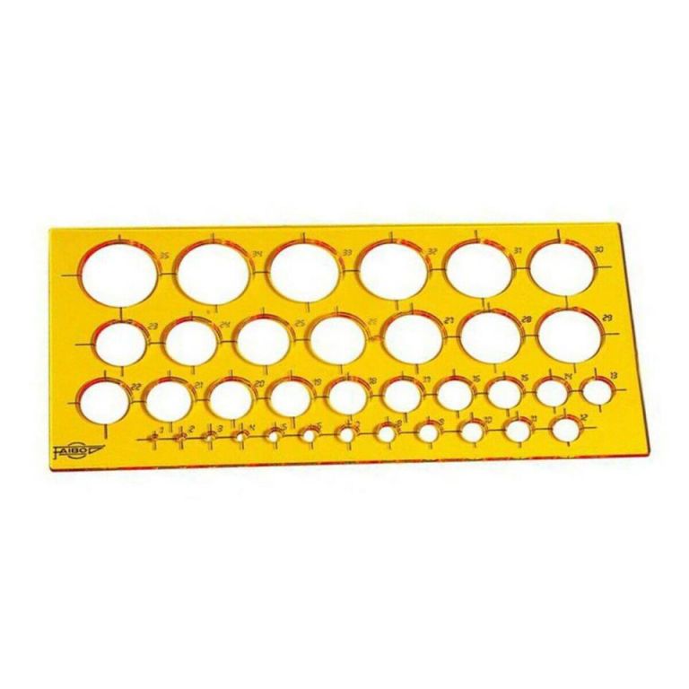 PLANTILLA de CIRCULOS modelo 271.Medidas: 13 x 27 cm.Fabricado en plástico Inyectado.35 elipses de 1 a 35 mm.Con reborde para tinta.