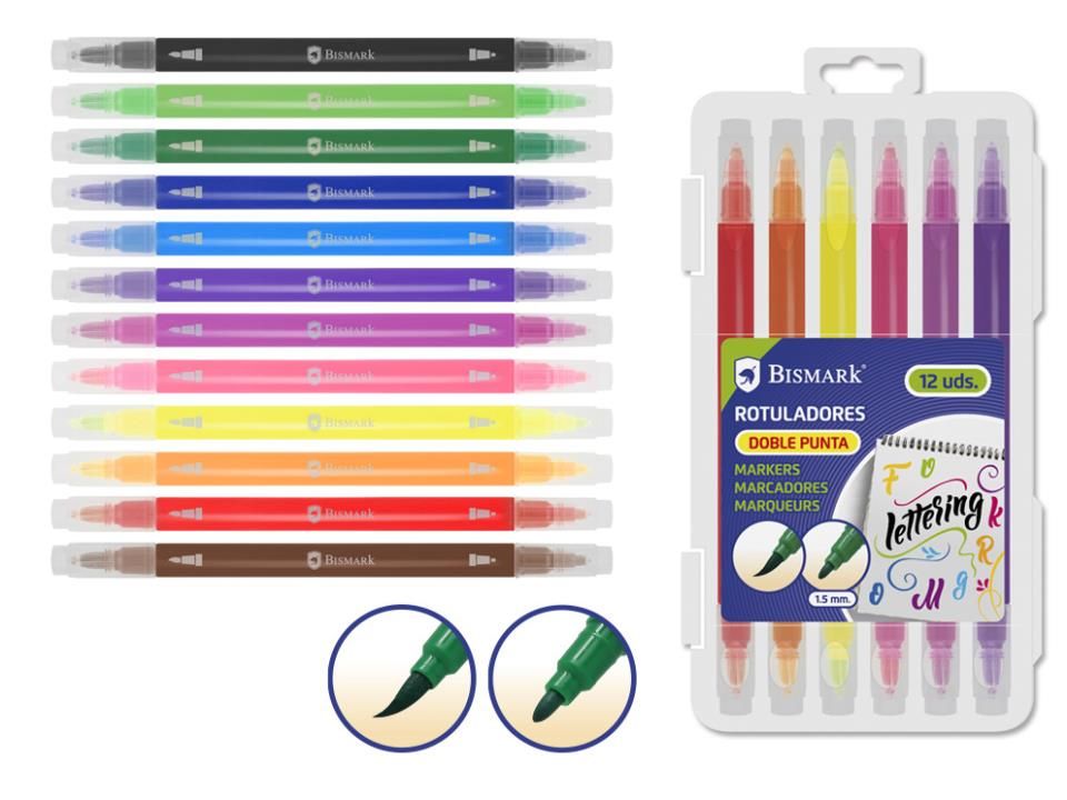 ROTULADORES DOBLE PUNTA PINCEL 12 COLORES