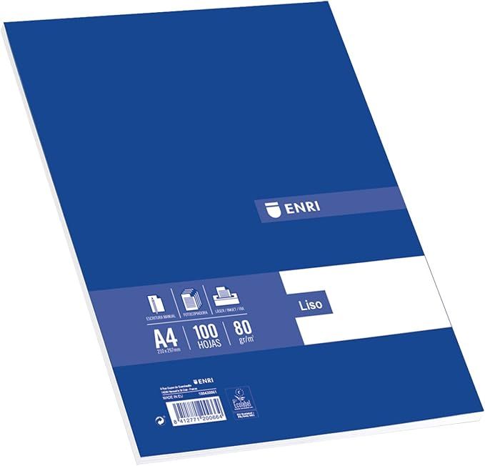 Paquete retractilado de papel blanco liso. Formato DIN A4. Paquete de 100 h. Gramaje : 80 grm. Para uso manual,impresoras o fotocopiadoras.