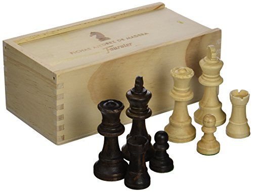 Juego de Fichas de ajedrez fabricadas en madera de tipo Staunton nº4. Presentadas también en caja de madera con separador de colores. Madera tallada y barnizada.