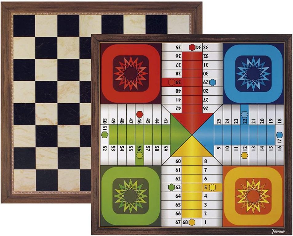Tablero de 40x40x1 cm de madera, reversible con parchís y Ajedrez/ Damas para 4 Jugadores. Madera melaminada mate de gran calidad.